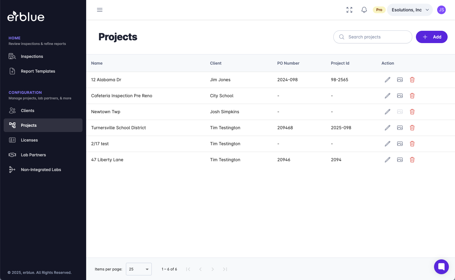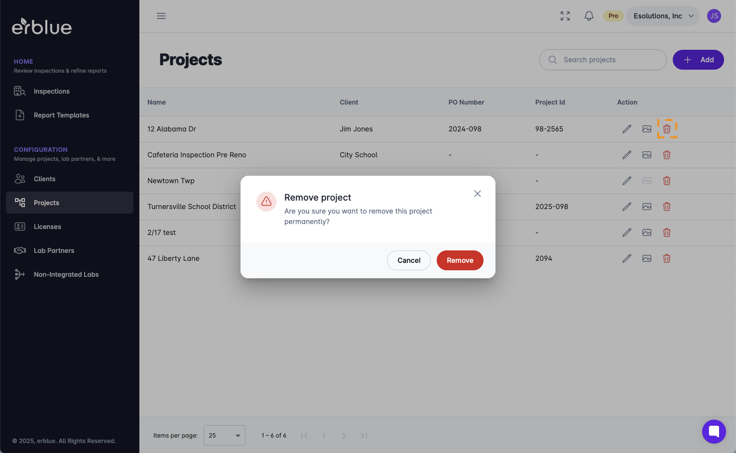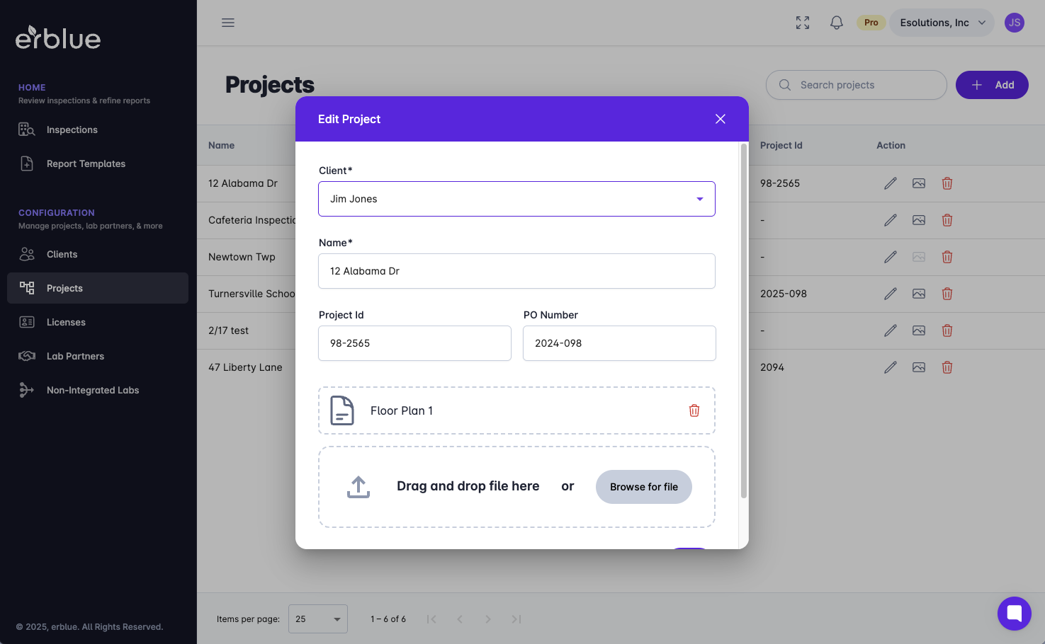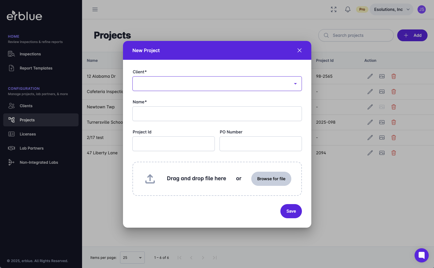 Through the erblue portal you have the ability to add, edit, and remove projects for clients that you work with. Adding projects makes them available in the eCOC+ Mobile App.