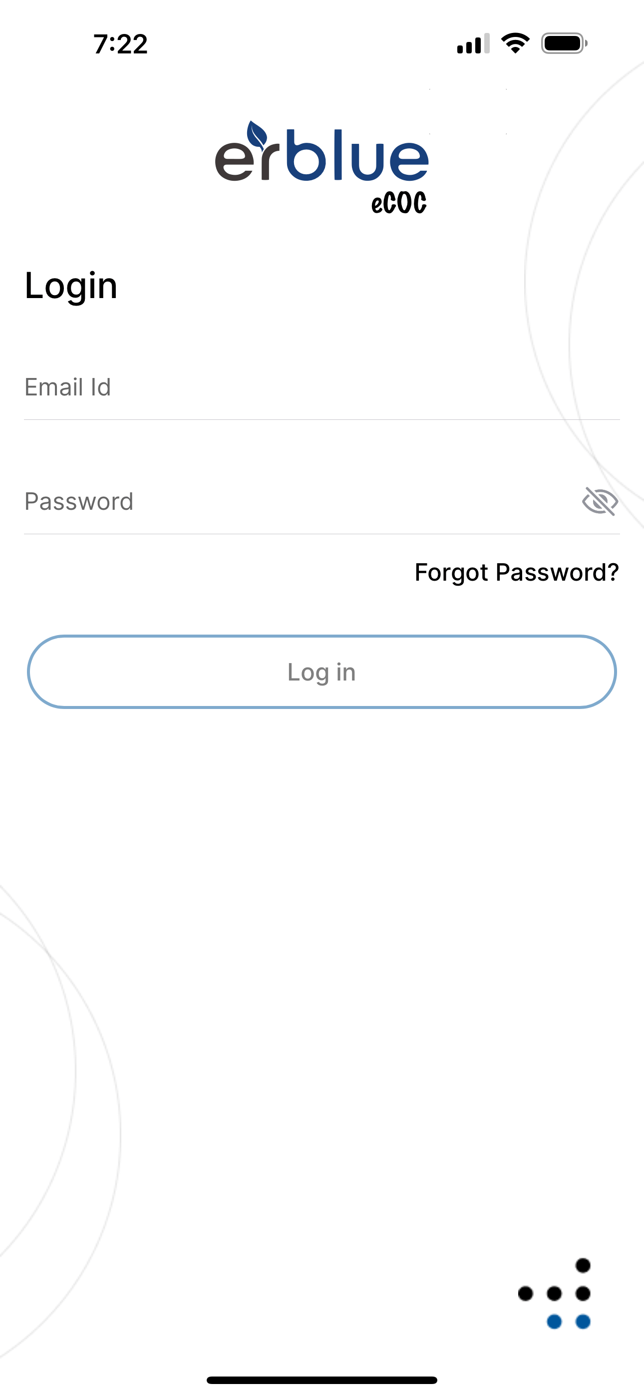 When you first open the eCOC mobile app you are required to login. To login simply enter your credentials in the form and tap the Log In button.