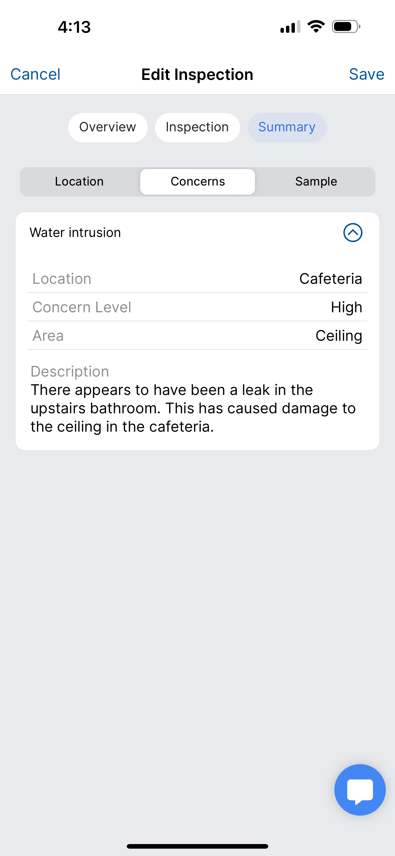 Once you are finished with your inspection simply tap Save in the upper right corner.