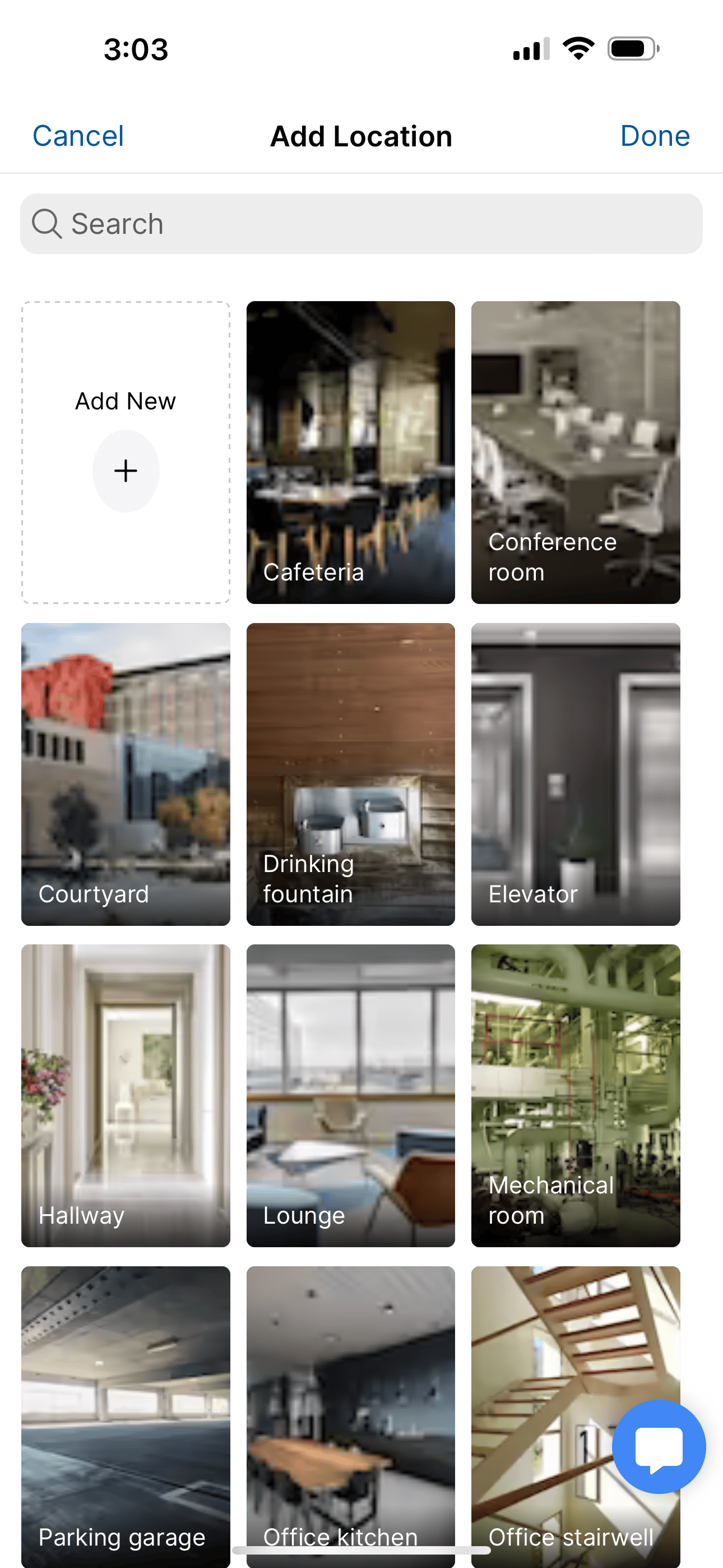 The list of available locations is dependent on the building type that you selected in the Overview section. Simply tap the plus button on the Add Location card to bring up the list of available locations for your inspection.