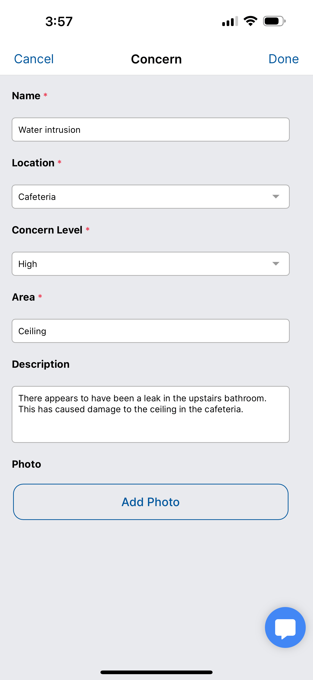 Tapping Done saves your concern to the inspection.